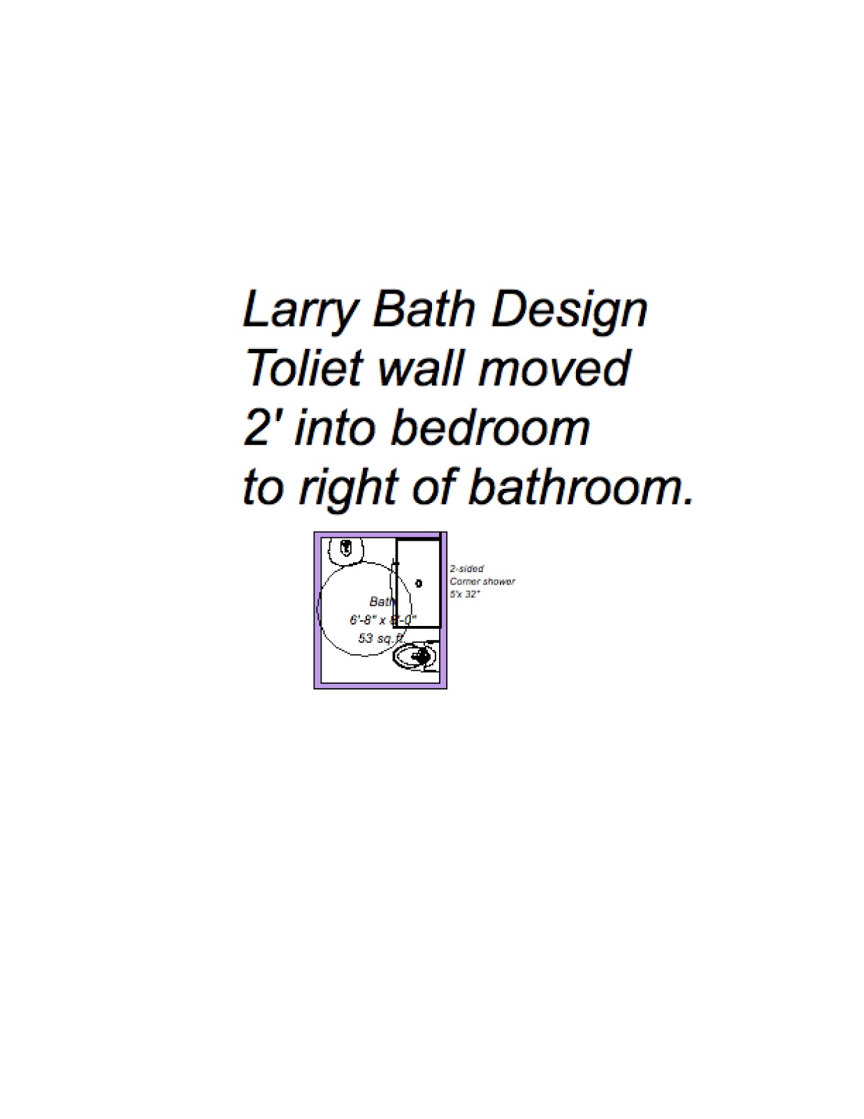 Below is the proposed design for Larry’s bathroom.